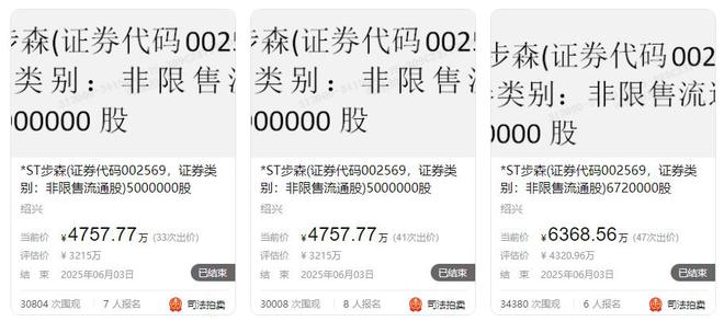 3日上午,*ST步森二股东所持全部1672万股股票被拍卖。