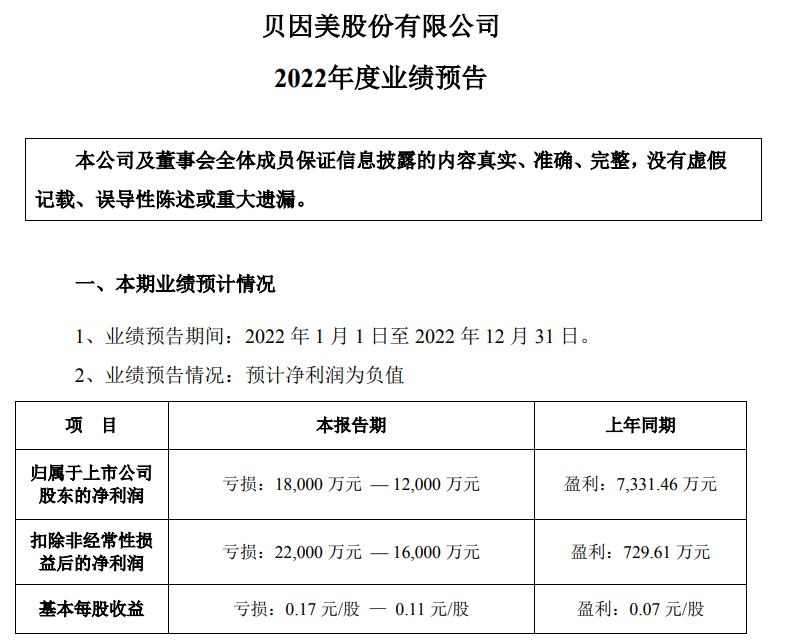2022年度业绩预告显示,贝因美预计2022年亏损1.2亿元—1.8亿元。继2021年成功扭亏后,2022年公司又陷入了亏损状态。