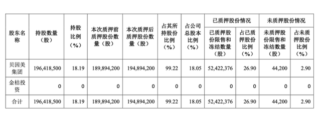 贝因美在公告中指出,相关被质押股份若被法院强制执行,可能引发贝因美集团的后续被动减持,非其主观意愿的减持行为。