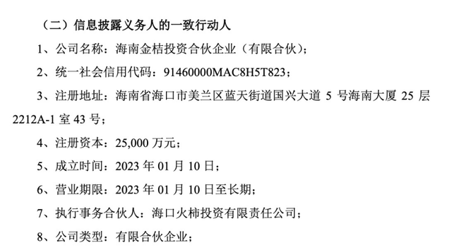 据公告,海南金桔成立时间2023年1月10日,设立时间仅仅比杭州中院立案执行日期早6日。