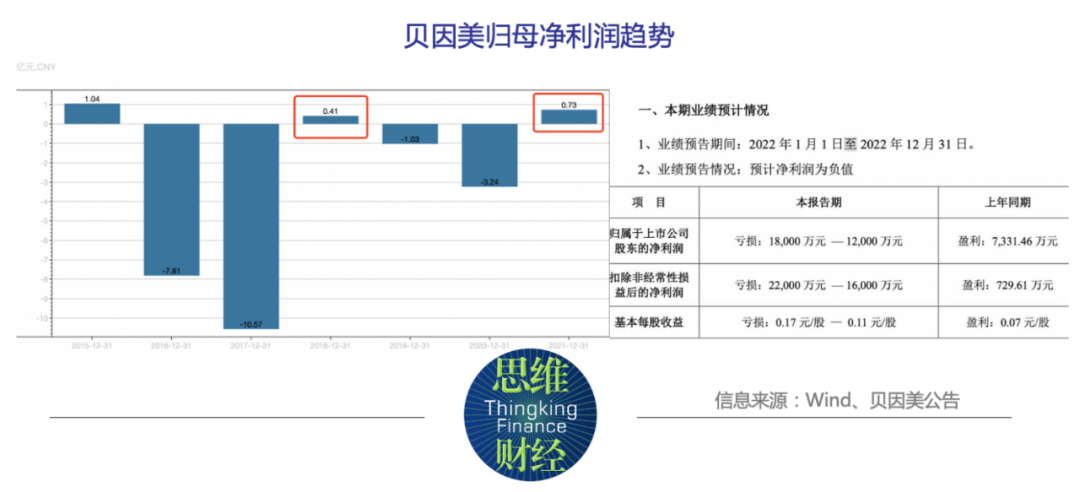 数据显示,2016年至2021年贝因美的归母净利润分别为-7.81亿元、-10.57亿元、0.41亿元、-1.03亿元、-3.24亿元、0.73亿元,2021年扭亏为盈之后,2022年再次亏损。
