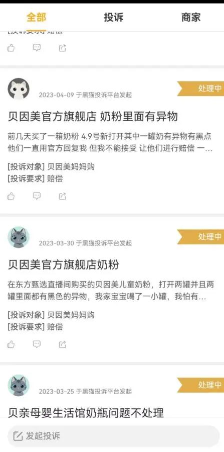 浏览黑猫投诉,一些异物等质量投诉值得企业警惕。毕竟食安大于天,奶粉尤其敏感。守住红线是发展乃至生存的关键。