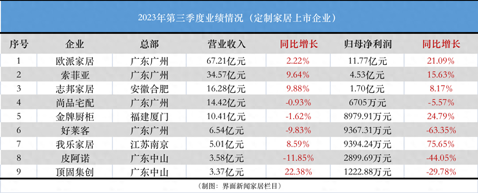 界面新闻曾报道,欧派家居在4月发布的2022年报中,定下今年力争营收同比增长10%至15%、净利润同比增长10%至15%的目标。如果第四季度能保持增长,或许可以超额完成利润目标。