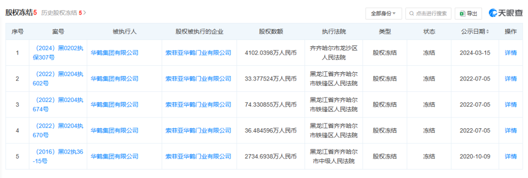 索菲亚华鹤当前大股东为索菲亚,持股比例92.5%;二股东为华鹤集团,持股比例7.5%。从经营层面来看,华鹤集团的境况并不理想,其于今年7月19日及8月21日,被大连市金州区人民法院列为被执行人。或是受此影响,华鹤集团持有索菲亚华鹤的部分股权也相继被冻结。