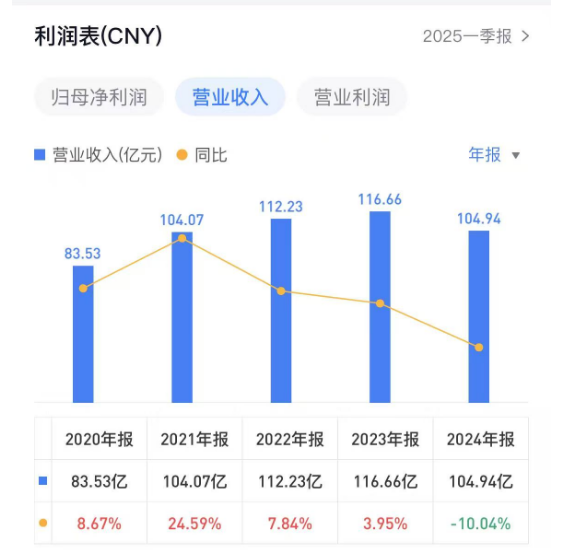 2024年,索菲亚实现营业收入104.94亿元,同比下降10.04%;归母净利润13.71亿元,同比增长8.69%。