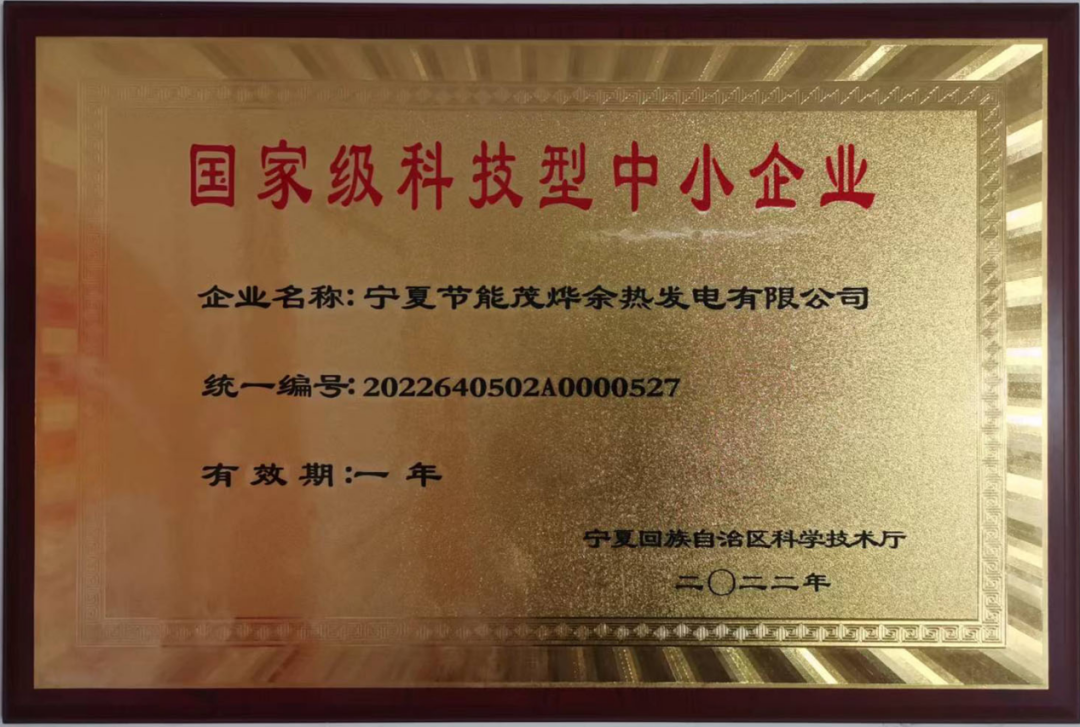 近日,清新环境子公司宁夏节能茂烨余热发电有限公司(以下简称“宁夏茂烨”)顺利通过国家级科技型中小企业、宁夏回族自治区级科技型中小企业双认定,荣获“国家级科技型中小企业”“宁夏回族自治区级科技型中小企业”称号。获此两项殊荣是对宁夏茂烨在自主创新能力、产品技术含量、科技研发水平及公司经营发展等方面的高度认可,也是对公司坚持创新驱动、深耕技术的肯定。