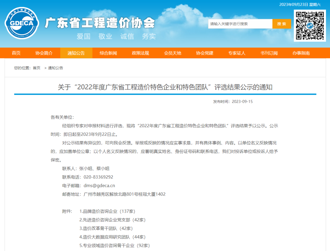 近日,广东省工程造价协会公示了“2022年度广东省工程造价特色企业和特色团队”评选结果。此次评选中,清新环境子公司深圳市深水工程造价咨询有限公司(以下简称“深水造价”)通过申报和评审,凭借自身专业和创新能力,首次获评广东省“品牌造价咨询企业”(共137家)、“先进造价咨询企业党支部”(共42家)荣誉,连续两年获评“专业领域造价咨询骨干企业”(共92家),一举斩获三项荣誉。
