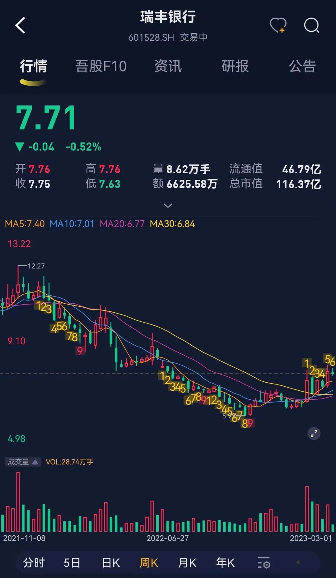 这可谓是“中国好股东“,相当于直接帮上市公司回购股份。但这一操作并没有使瑞丰银行股价出现半点波澜,2022年瑞丰银行股价跌近43%,在A股10家农商行中垫底。