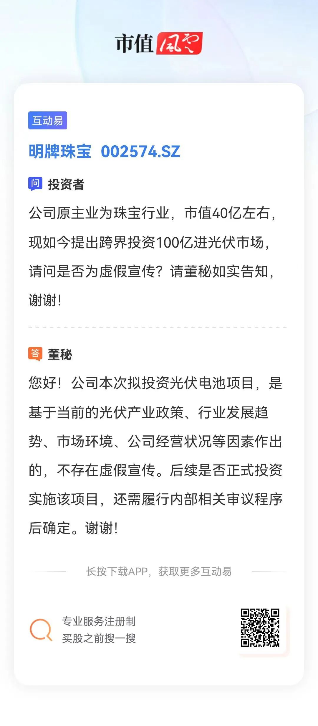 这一建设单位似乎与上市公司控股股东“浙江日月首饰集团有限公司“存在某种关联,且公司曾在互动易中表露,控股股东对光伏产业有着长期关注和深入研究。