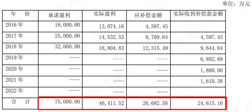 当时业绩承诺7.5亿,但实际完成4.6亿,只完成6成,所涉及的应补偿金额还有部分尚未还清。