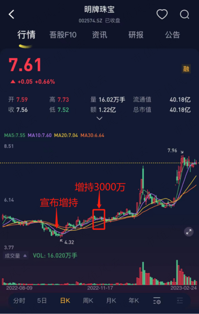 去年底实控人宣布增持并买入了3000万元公司股票,增持均价4.75元/股左右,以当前(2月24日)7.61元/股的收盘价来看,浮盈60%。