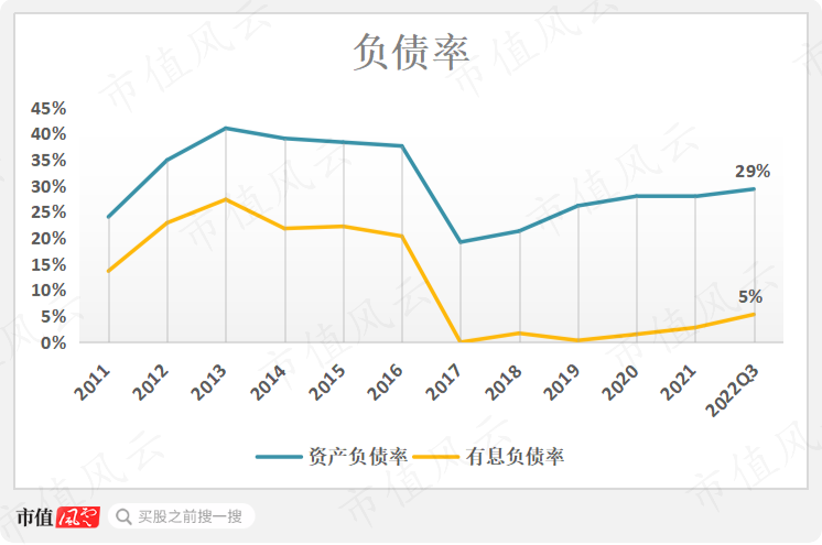 从负债来看,当前公司债务水平总体可控。2017年由于到期偿还了10亿公司债负债率陡然下滑,截至2022年9月底,资产负债率29%,有息负债率仅5%,但若真要应对百亿的跨界投资,可想而知未来债务将急剧拉升。