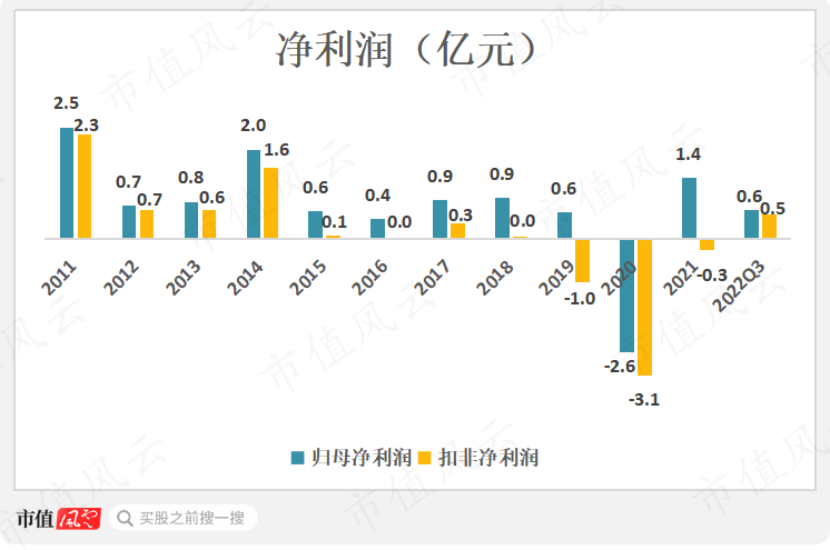 利润端也非常难看,2016年来,公司完全不赚钱,扣非净利润累计为负的3.5亿,2022年也预计亏损9500万-1.4亿。