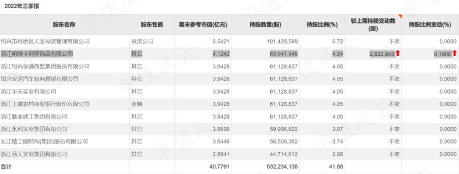 在这场大跌中,明牌珠宝以6.8亿持续从二级市场买入530万股,持股比提升至4.24%,于2022年9月底进入瑞丰银行第二大股东列表。