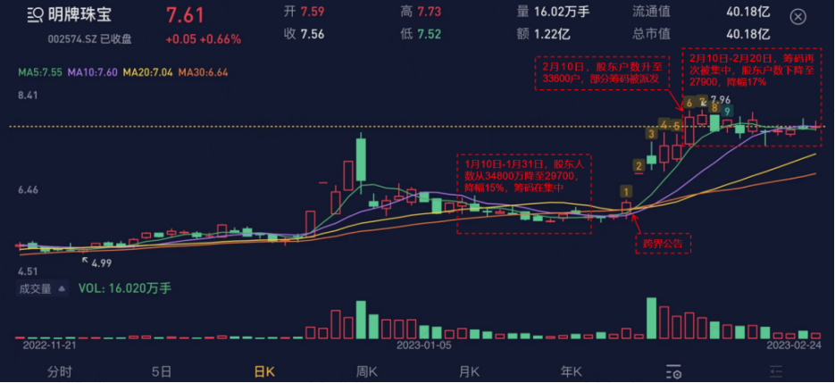 发布第一次延期公告时,公司股东户数为33600户,而到2月20日的7个交易日里,股东户数降至27900户,降幅17%,筹码进一步集中,表明有资金在股价震荡期间吸筹。