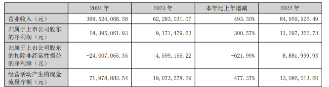 群兴玩具2024年年度报告显示,公司报告期内营业总收入为3.70亿元,同比增长493.30%;归属于上市公司股东的净利润为-1839.51万元;归属于上市公司股东的扣除非经常性损益的净利润为-2400.71万元;经营活动产生的现金流量净额为-7197.89万元。