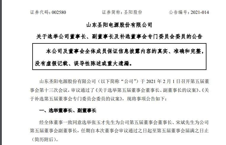 去年2月,圣阳股份公告董事长宋斌辞职消息,同时宣布来自山东国惠投资有限公司(简称“山东国惠”)张玉才出任新董事长。不足一年后,张玉才宣布因工作原因申请辞去公司董事长、非独立董事、董事会战略委员会主任委员、提名委员会委员、审计委员会委员职务,算来他的任期还不足一年。