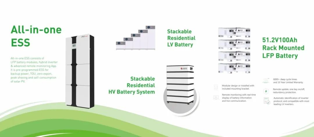 产品涵盖了电池模组、逆变器、低压垒接电池,以及高压储能堆叠系统。产品已获得UL1973、UL9540A、UN38.3、CE、IEC62619、CEC等认证。