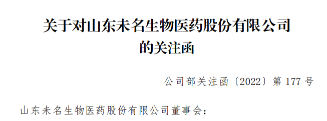 3月21日,深交所发布了一则关于对山东未名生物医药股份有限公司的关注函,因未按时完成2021年财务审计工作,公司存在终止上市风险。