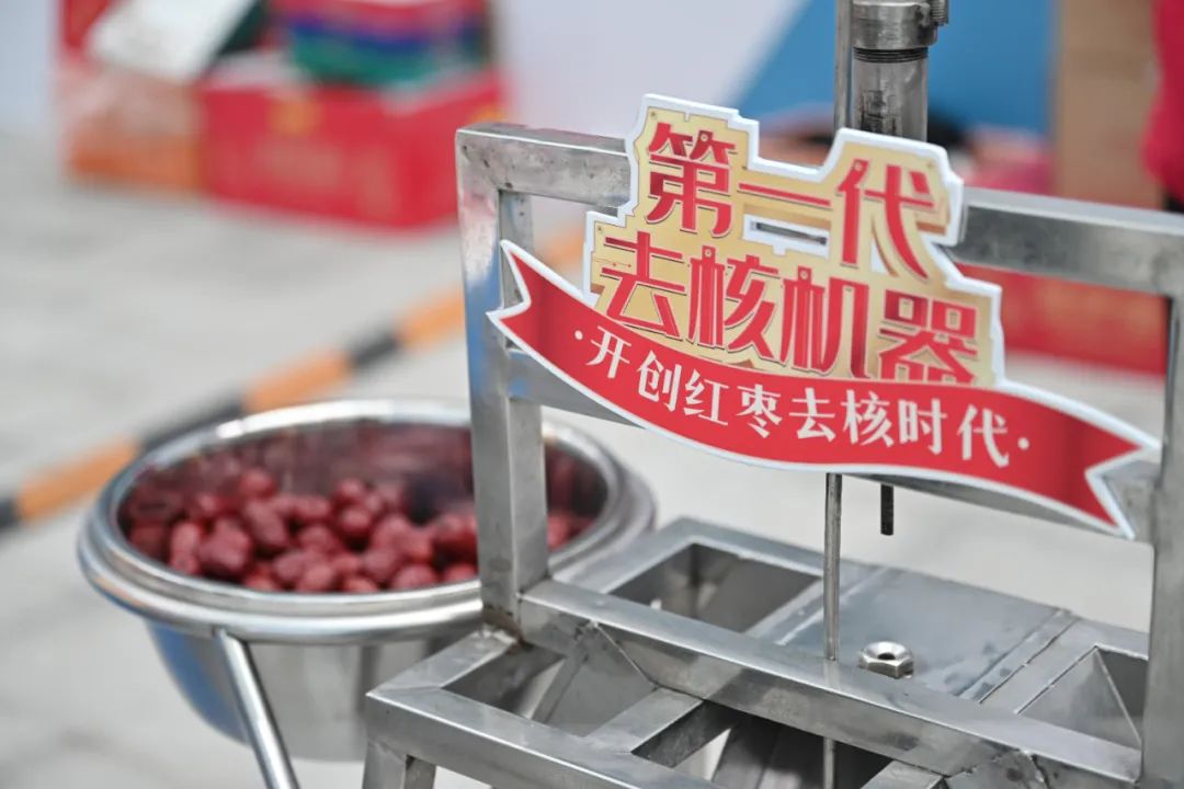 在众智汇豫街区,一台有着开创性意义的“第一代去核机器”颇具历史感,引人驻足。它形似缝纫机,简单又干练,半自动的去核过程充满了互动趣味性,让人身临其境地感受到数年前属于好想你的创新法则。