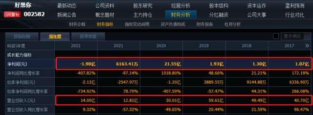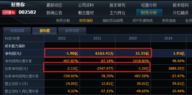 其中,2022年,好想你净利润亏损1.9亿元,扣非净利润亏2.13亿元。