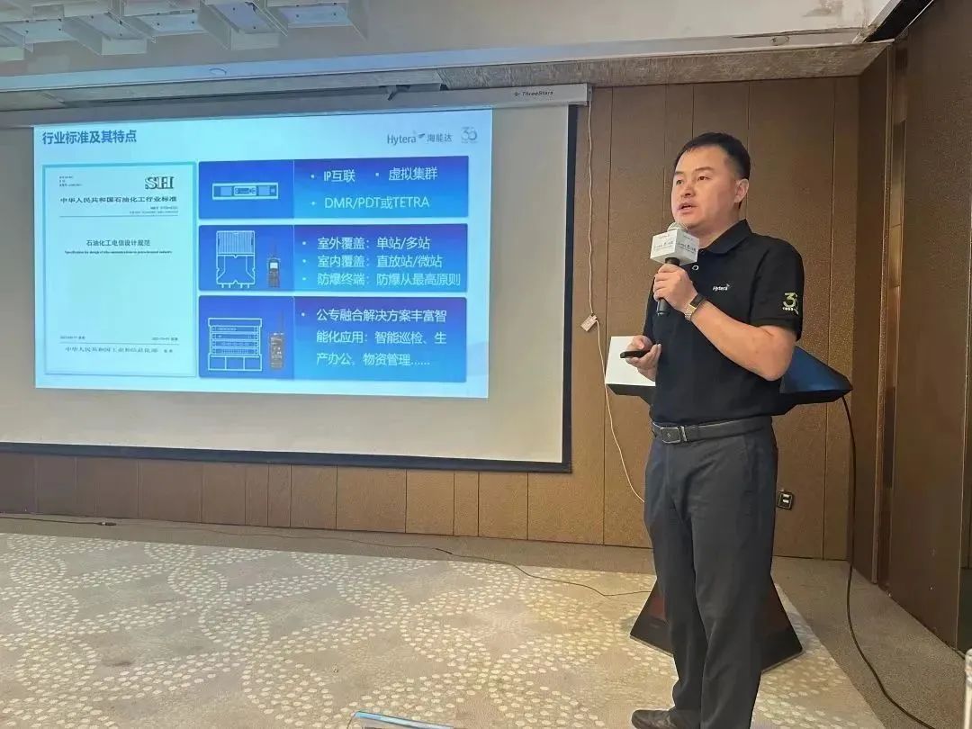 会议由海能达通信股份有限公司石油化工行业负责人马亚军主持,海能达全球解决方案中心总经理张学军给广大与会者介绍全球无线通信发展的趋势、全球各地无线通信频率使用及划分要求、5G技术对于石油化工行业的影响以及设计过程中常见问题的处理办法。