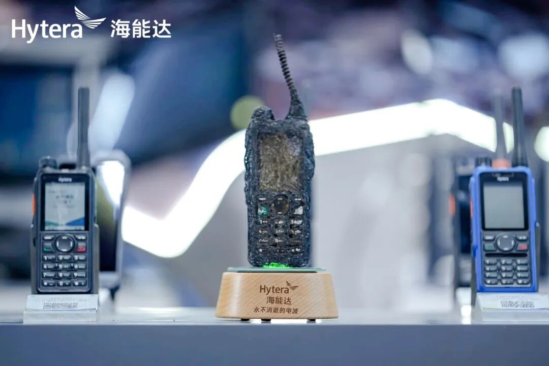 本次展会还展示了搭载AI智能应用的多模对讲机。通过AI智能应用,演示了秒级检索问答、智能意图识别、智能语音指令控制等功能,助力消防实战智能化转型。而智能化的另一面,是极致的可靠。展会现场陈列了一台在火灾中被烧毁的专业数字对讲机HP780,它虽外观损毁,却依然能与其他终端正常通话。