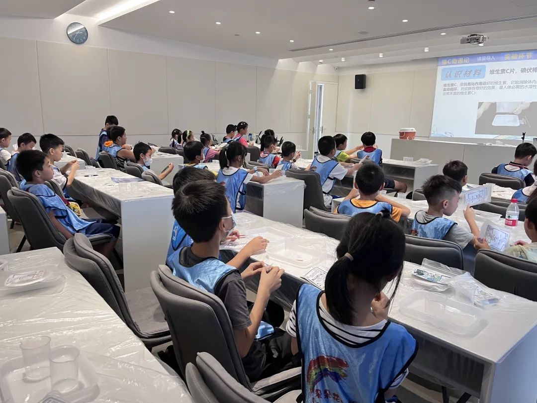 接下来的课程,老师通过维C奇遇记——氧化还原反应、彩虹摩天轮——水的密度、魔法变色——酸碱指示剂、潜望镜——光的反射等多个实验,为孩子们讲解科学理论知识和实际操作步骤,让孩子们在动手过程中感受到科学的独特魅力。
