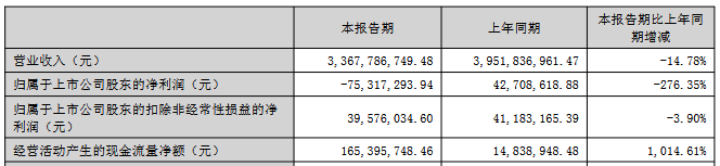 2025年1-6月,公司实现营业收入33.68亿元,同比下降14.78%;归属于上市公司股东的净利润为-7,531.73万元,上年同期为4,270.86万元;归属于上市公司股东的扣除非经常性损益的净利润为3,957.60万元,同比下降3.90%;经营活动产生的现金流量净额为1.65亿元,同比增长1,014.61%。