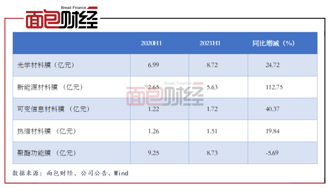 报告期间,公司毛利率较高的产品贡献的营收增长较明显,使得当期盈利能力有所提高。公司可变信息材料膜、光学材料膜、新能源材料膜的毛利率较高且同比增长较明显,上述三大产品的毛利率分别为46.45%、38.85%和34.33%,同比分别增长4.41个百分点,18.10个百分点和13.82个百分点。当期,上述产品的营收同比增幅较大。另一方面,公司聚酯功能膜的毛利率较低,仅为25.79%,当期该产品的营收同比减少。