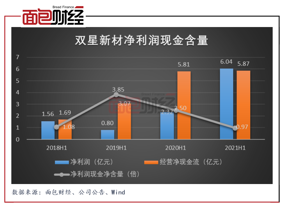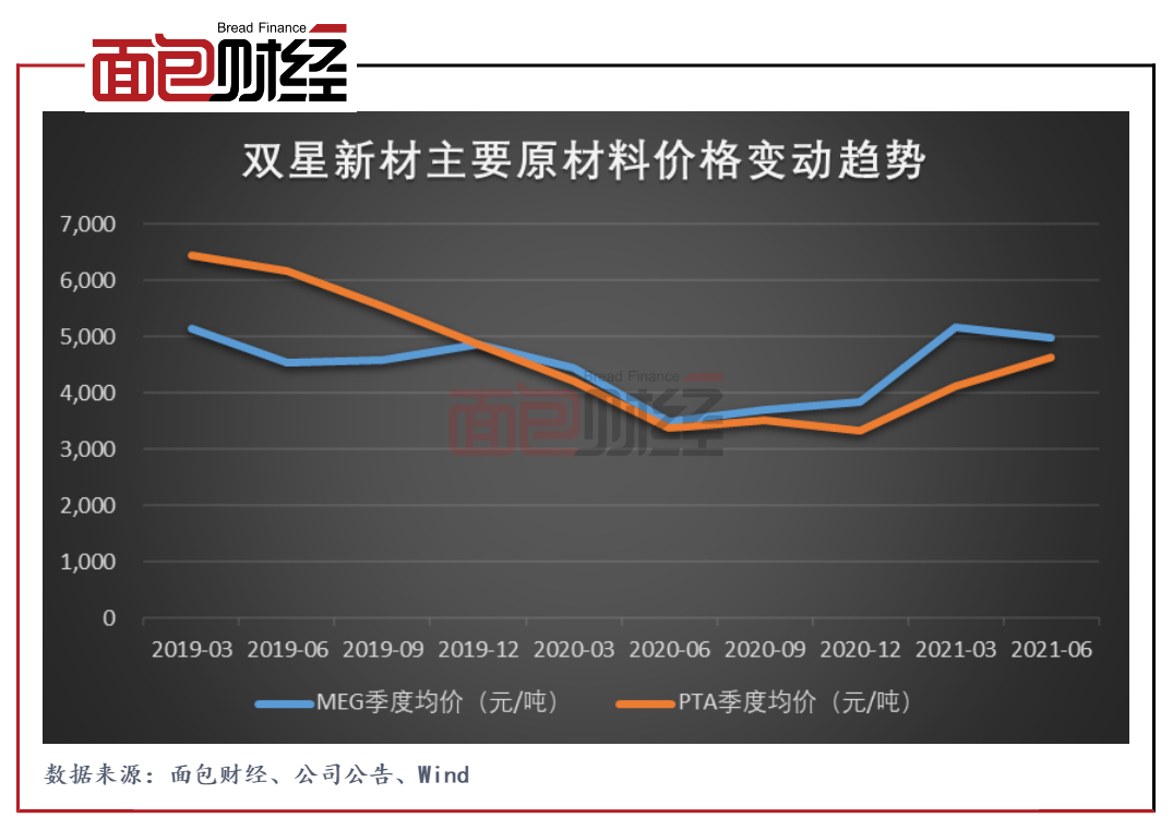 双星新材的原材料主要为MEG、PTA等产品,2021年上半年,上述原材料的市价呈上升趋势。此外,报告期间,公司的净利润现金含量有所下降。