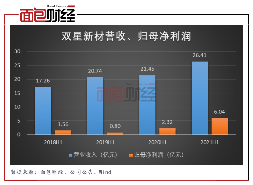 双星新材近期发布2021年中报,数据显示,公司报告期间产生营业收入26.41亿元,较去年同期增加23.10%,录得归母净利润6.04亿元,较去年同期增加160.28%。