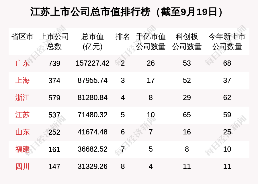 据统计,与浙江相比,江苏上市公司总数比浙江少42家;千亿市值公司数量比浙江多2家;科创板公司数量比浙江多36家;今年新上市公司数量比浙江少3家。