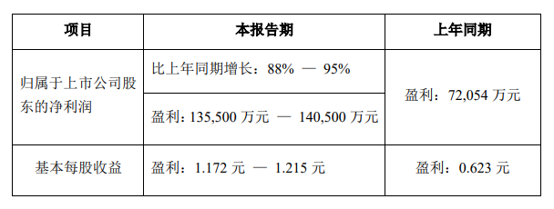 预计今年净利达13.5-14.1亿,同比增长88%-95%