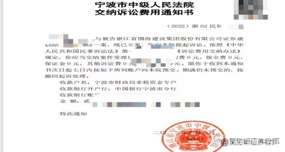 宁波中院已通知缴纳诉讼费,六月已有索赔案件开庭通知。
