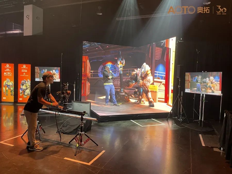 奥拓电子是LED虚拟拍摄领域的先驱者。作为全球领先的智能视讯解决方案提供商,奥拓的产品以卓越的图像质量、精准的色彩再现和无与伦比的亮度水平得到全球专业人士的信任。公司已在全球范围内承接了60余个中大型 LED虚拟影棚项目,并成功应用到多个世界 500 强企业,如英伟达、苹果、腾讯、Meta、微软、亚马逊。今年,奥拓电子与HTC VIVE Mars携手成为暴雪嘉年华活动的官方合作伙伴,为其提供MetaBox XR解决方案,让暴雪的铁杆粉丝能通过奥拓电子打造的沉浸式活动空间,进入到游戏的虚拟世界,实现现实与虚拟融合的全新体验。