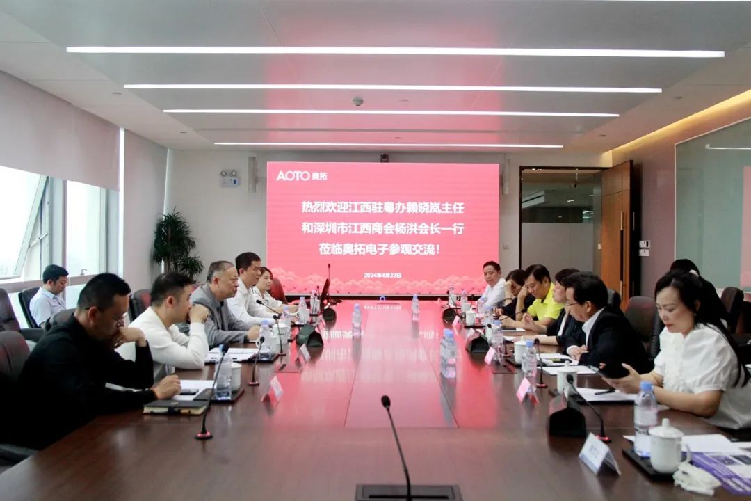 4月22日,江西省政府驻广东(深圳)办事处党组书记、主任赖晓岚,深圳市江西商会会长杨洪一行走访奥拓电子,受到了江西籍企业家、深圳市奥拓电子股份有限公司创始人兼董事长吴涵渠的热情接待。