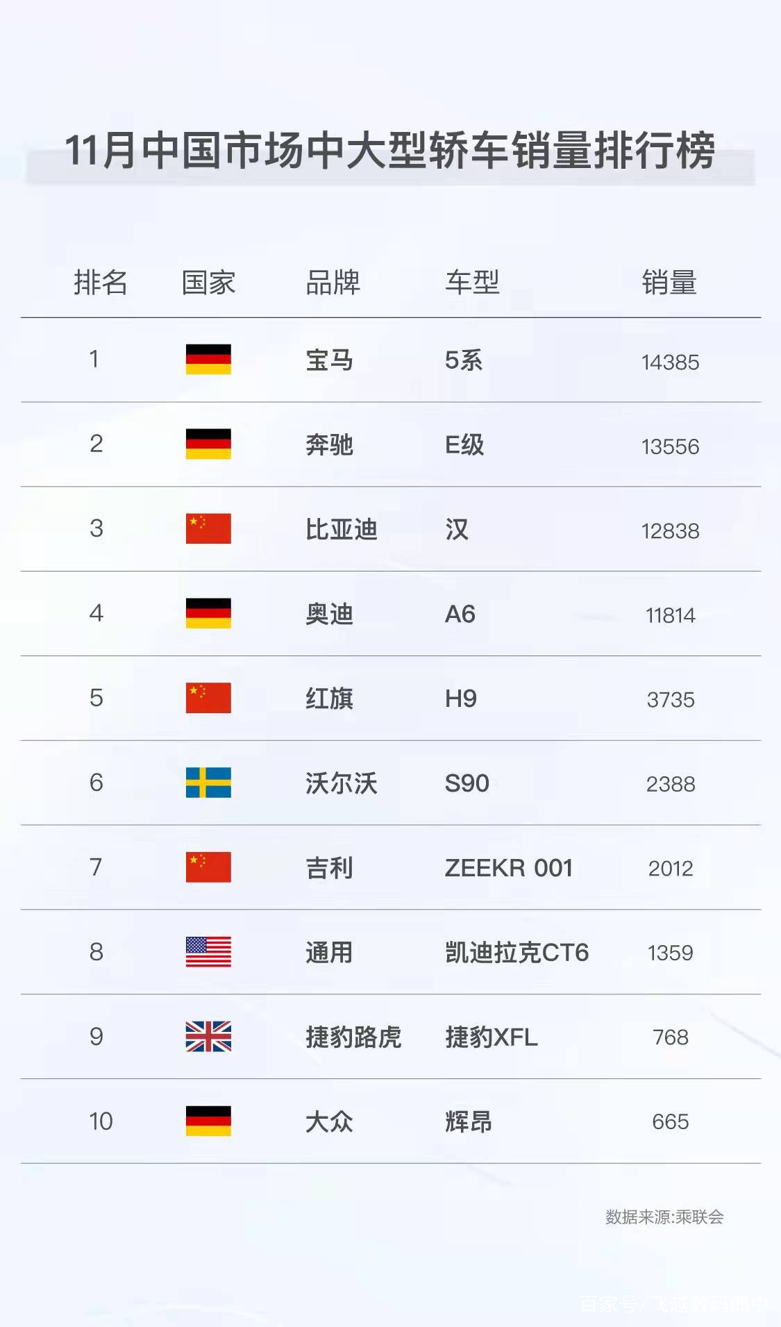 再从11月的中大型轿车销售排行榜中来看,其中比亚迪汉的销量已经高于奥迪A6在宝马5系和奔驰E级之下位列第三,在这个传统BBA占据的市场中,也首次看到了中国自主品牌车型的身影,获得这样的成绩实属不易。