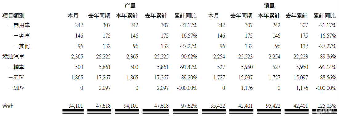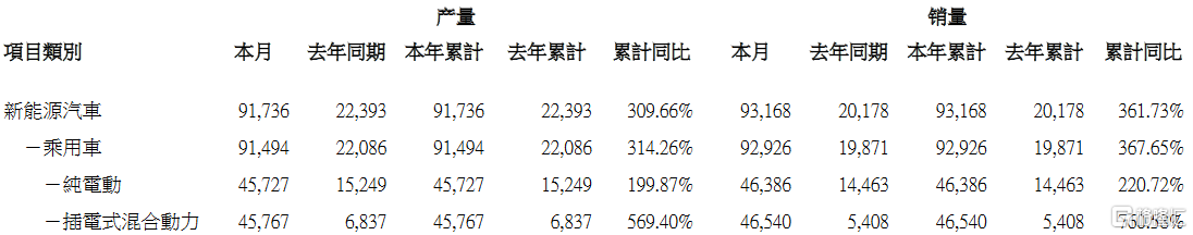 格隆汇2月3日丨比亚迪股份(01211.HK)发布2022年1月产销快报,单月产量合计94,101辆,同比增长97.62%;销量合计95,422辆,同比增长125.05%。其中,新能源汽车产量91,736辆,同比增长309.66%;销量93,168辆,同比增长361.73%。