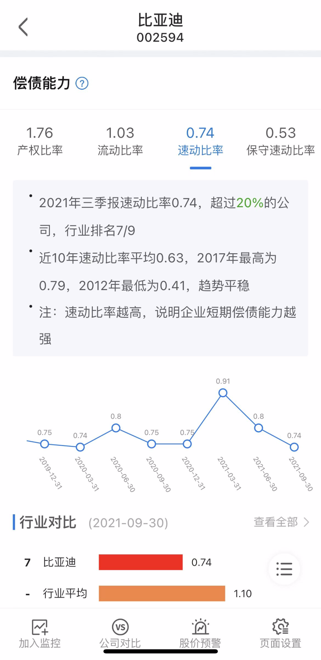 摸象APP数据显示,公司基本面表现良好,从盈利能力来看,公司毛利率自2021Q1以来起稳回升,2021年报显示,综合毛利率为13.02%,略高于行业平均水平,目前公司已宣布全面停产燃油整车,并加大研发费用支出聚焦新能源车型业务,有望进一步提升其盈利能力。但广大投资者仍需关注公司偿债风险,截至2021年底公司资产负债率为65%高于行业均值,存在长期偿债风险。流动比率和速动比率分别为0.97/0.72,均低于基准1,存在短期流动性压力及债务风险。