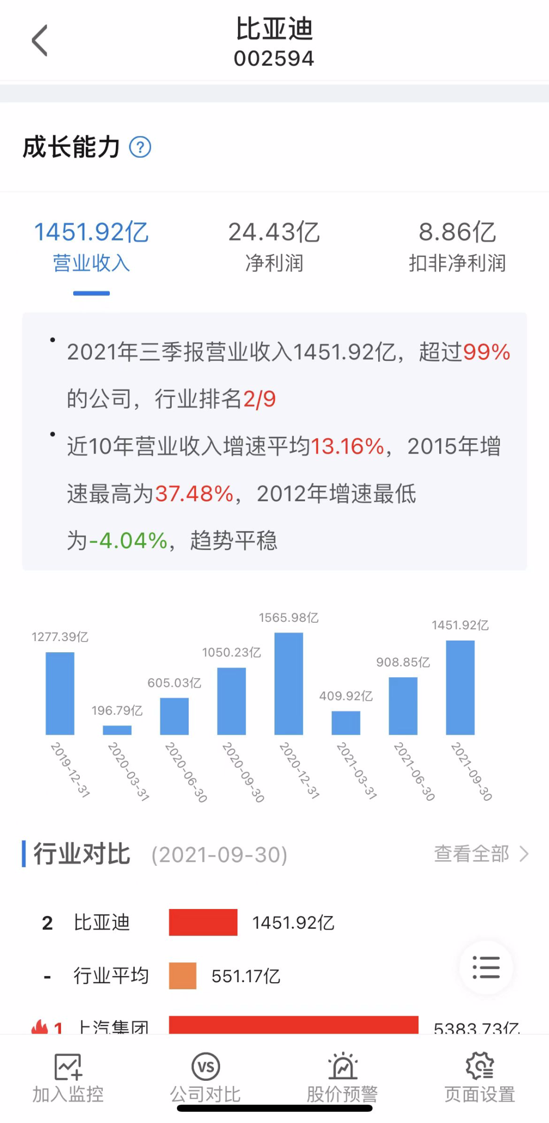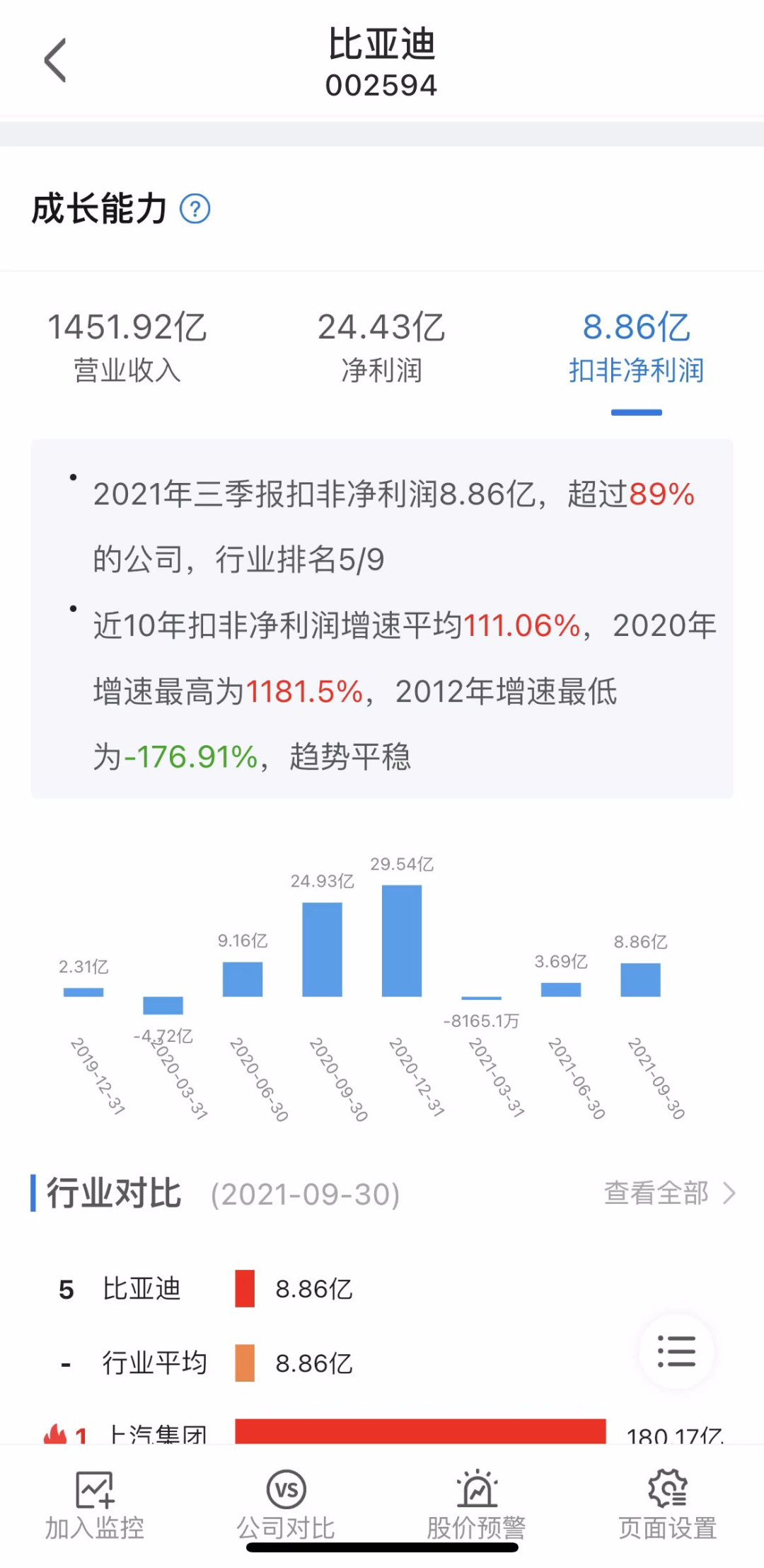 根据年报显示,截至2021年12月31日,比亚迪营收规模达2161.42亿元,同比增长38.02%,再创佳绩,而扣非后归属于上市公司股东净利润12.55亿元,同比下降57.53%,不尽如人意。可以预见的是,比亚迪营收增速符合市场预期,千亿体量仍能保持近40%的增速,韧劲十足,但看到扣非后归母净利润指标后,市场上也有一些质疑声,事实果真如此吗?利润去哪儿了?公司“增收不增利”的现象又如何解释?