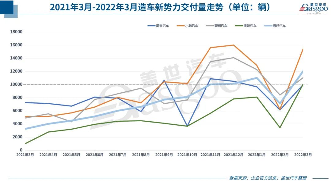 具体来看,小鹏汽车3月交付量环比大幅回升,达到15,414辆,同比增长202%,环比增长148%;哪吒汽车3月交付量达到12,026辆,同比增长270%,环比增长近7成;理想汽车3月交付量为11,034辆,同比增长125.2%,环比增长31%;零跑汽车破万可谓是3月新势力交付量最大的看点,3月其交付量达到10,059辆,同比增幅超200%,环比增长193%;蔚来虽未破万,但同比增长37.6%,环比增长了62.9%。