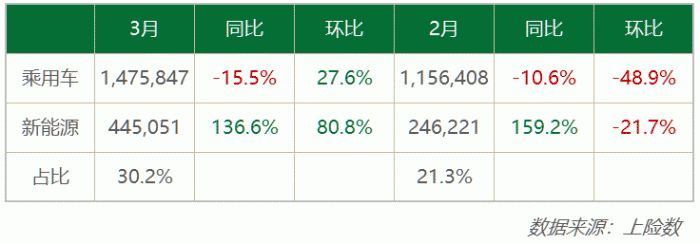 更值得一提的是,3月新能源渗透率达30.2%,首次突破30%。这很大程度在于,体量最大的燃油车市场呈现萎靡状态,导致3月汽车整体销量大跌。即分子增大,而分母变小,因此新能源渗透率实现30%的高位。