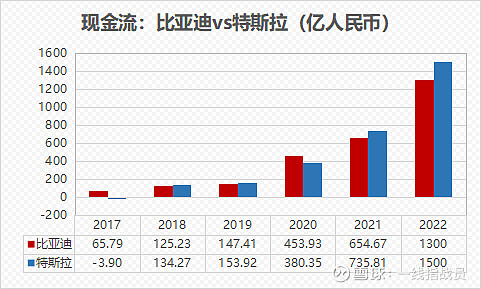 从营收,现金流,盈利的三张对比图来看,比亚迪的营收,现金流增长跟特斯拉基本上是同步,同幅度的。但是盈利增长严重滞后于特斯拉。
