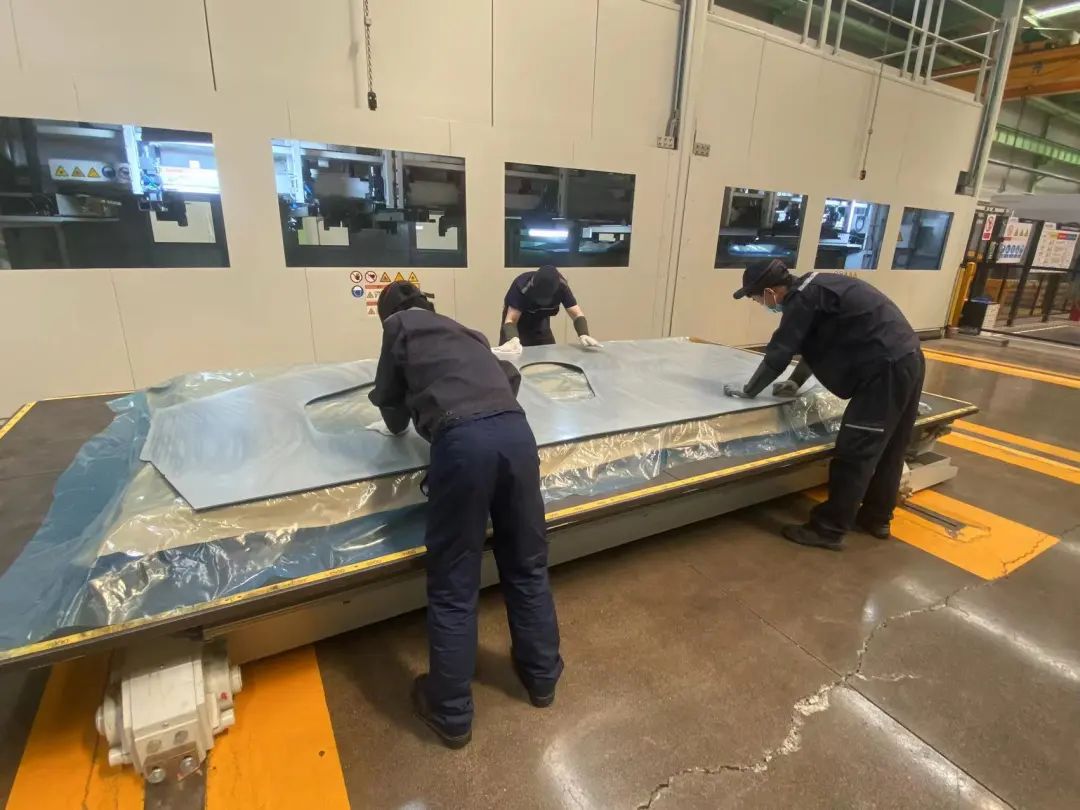 由于该外板加工进尺超过3米,同时客户对加工精度、平面度、异物脏点等要求都极高,是激光落料线最难的零件之一。不仅如此,该产品加工完毕后,需在24小时内紧急发往1000多公里外的比亚迪生产基地,对产品包装及物流运输也是极为严苛的考验。