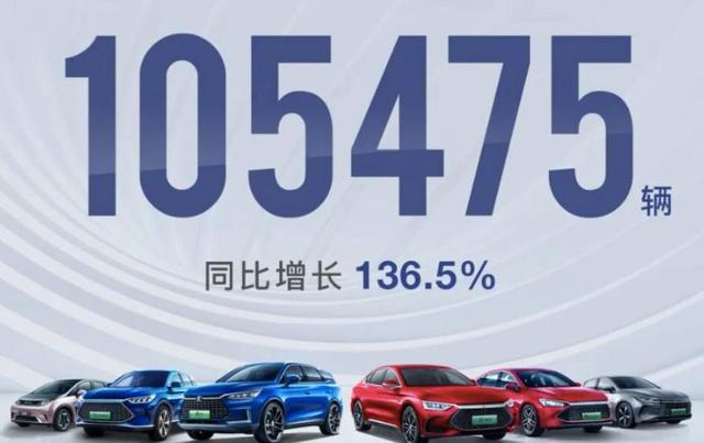 2、近日,比亚迪发布4月产销快报。数据显示,比亚迪乘用车4月销售105475辆,同比增长136.5%。