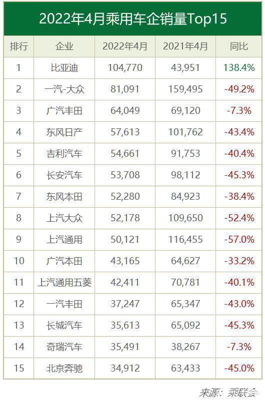 合资三巨头的一汽-大众、上汽大众和上汽通用更是不例外,它们主要集中在疫情较为严重的长春和上海,这令它们的整车和零部件生产都受到很大的冲击,4月销量几乎都同比腰斩。
