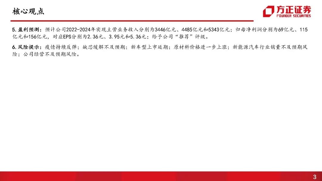 风险提示:疫情持续反弹;缺芯缓解不及预期;新车型上市延期;原材料价格进一步上涨;新能源汽车行业销量不及预期风险;公司经营不及预期风险。