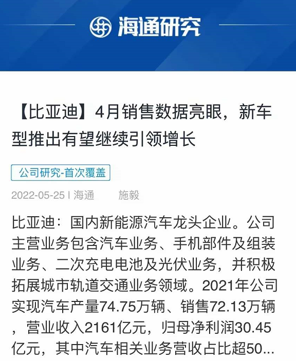 还有一些券商的行业分析师虽然不能直接覆盖比亚迪,但也试图从比亚迪的热度中“引流”。