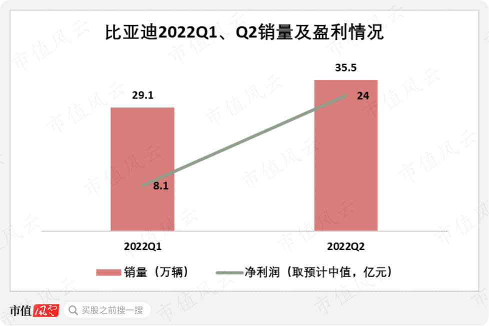 分季度来看,二季度比亚迪新能源车销量35.5万辆,环比增长了22%;二季度实现归母净利润20亿元-28亿元,环比增长了196%,二季度盈利大增应该是提价效应与规模效应的体现。